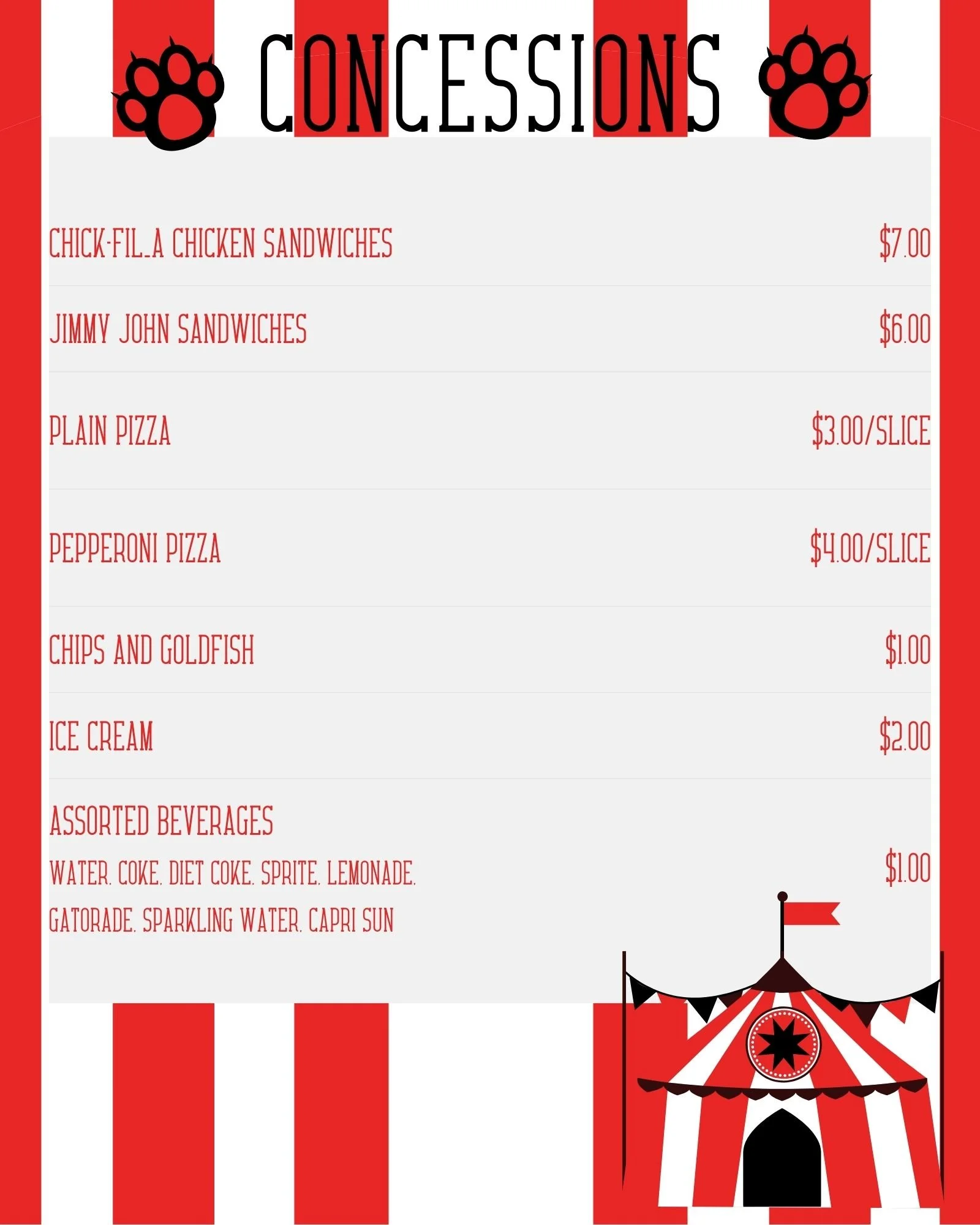 Categories: Select a Category Bracelet Tickets Donations Food T-Shirt Food Bracelet Tickets Donations Food T-Shirt Concessions from $1.00 Food Items: Select Food Items Hoagie Pizza Slice Gatorade Candy Ice Cream Snacks Drinks Chicken Add To Cart Added!